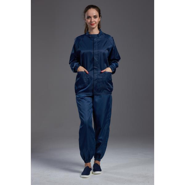 Autoclave Reusable Clean Room Garments With Lapel Jacket And Dark Blue Pants Images |